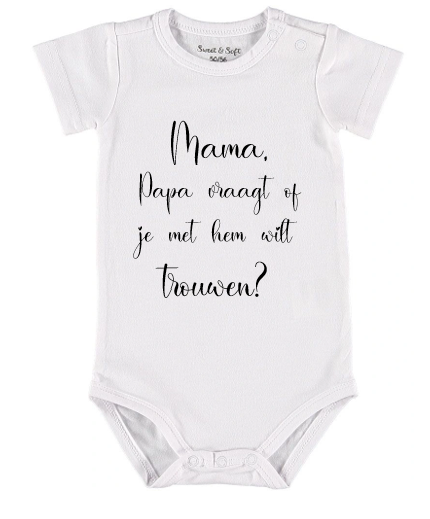 Kies zo hierboven een rompertje, een t-shirtje òf een sweater (+ € 4,-) in de gewenste maat, kleur en mouwlengte. Sweaters hebben altijd een lange mouw.