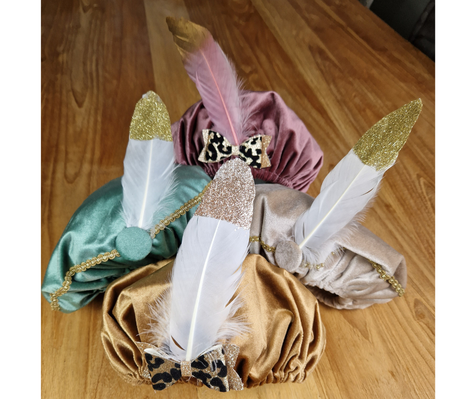 Met liefde handgemaakt door Karin. De Pietenmutsen in de Kidz Label14 collectie zijn uniek omdat Karin nooit dezelfde mutsen maakt qua samenstelling van kleur/strik/veer voor haar verschillende klanten. Deze Pietenmutsen zijn voor zowel jongens als meisjes en leverbaar in 2 maten (basic muts), 0-1 jaar en 1-7 jaar (het elastiek is nog verstelbaar) Deze luxe Pietenmutsen hebben we in 1 maat (1-7 jaar) en ook hier is het elastiek nog verstelbaar!