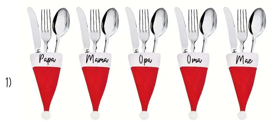 Vaak wordt het bestek saai op tafel gelegd, maar met de speciaal op maat gemaakte kerstmutjes ga je het diner veel leuker maken. Deze kerstmutsjes kunnen niet ontbreken bij je kerstontbijt of kerstdiner. Door je mes, vork en lepel in het kerstmutsje te doen is je tafel al snel in een gezellige feestelijke kerstsfeer gezet. Je kunt er natuurlijk ook eetstokjes of ander servies in kwijt.