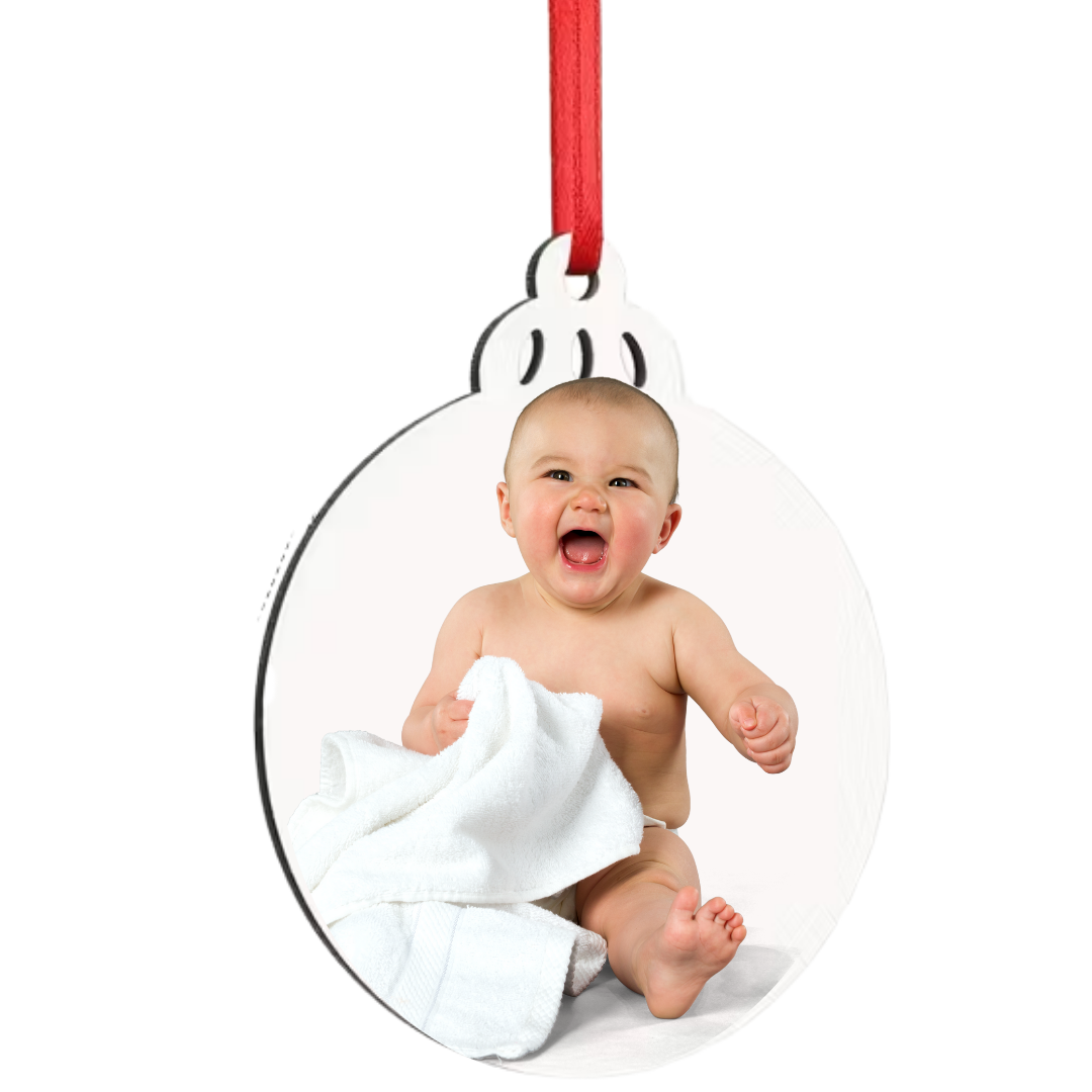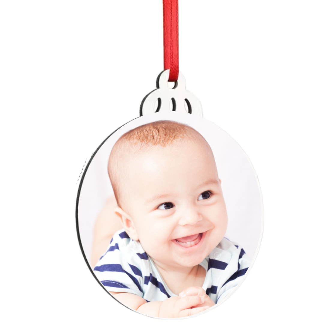 gepersonaliseerde kerstboomhanger, kerstboomhanger met foto, kerstbal met tekst, houten kersthanger, kerstdecoratie met naam, kerstbal mdf gepersonaliseerd, kerstboomhanger dubbelzijdig bedrukt, kerstbal met eigen foto, kerstcadeau met naam