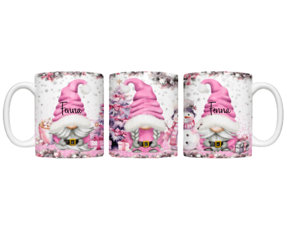 Een kerst Gnoom print, roze, inclusief de naam van je mini