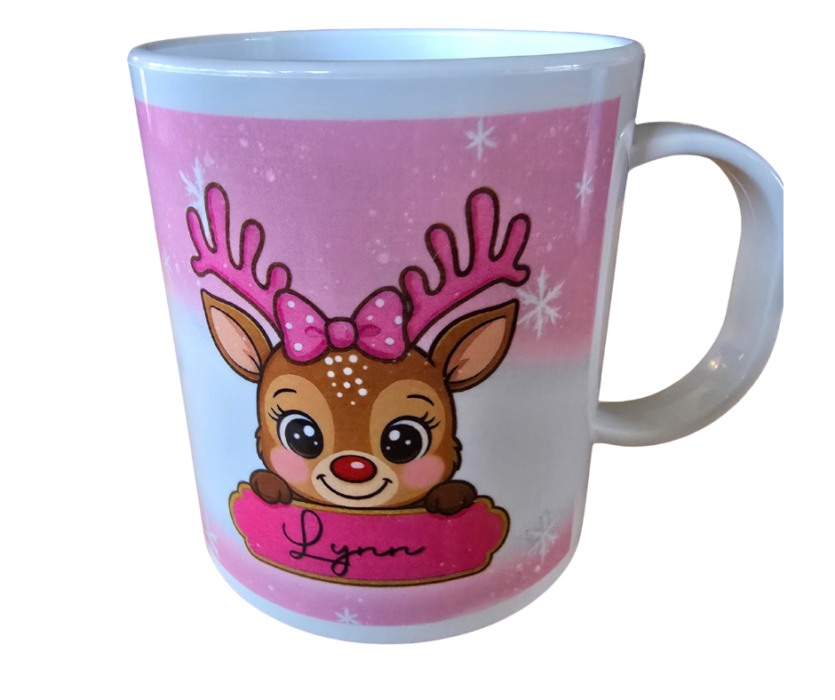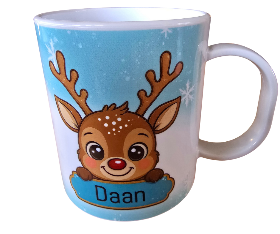 Maak drinken extra leuk met een gepersonaliseerde kindermok van kunststof in kerst design! Deze vrolijke mok is speciaal ontworpen voor kleine kinderhandjes en kan volledig bedrukt en voorzien worden van een eigen naam. Met deze mok wordt elk drankje een feestje. En wat dacht je van het kerstfeest op school, hoe leuk is het dan om deze kindermok kerst mee te nemen!