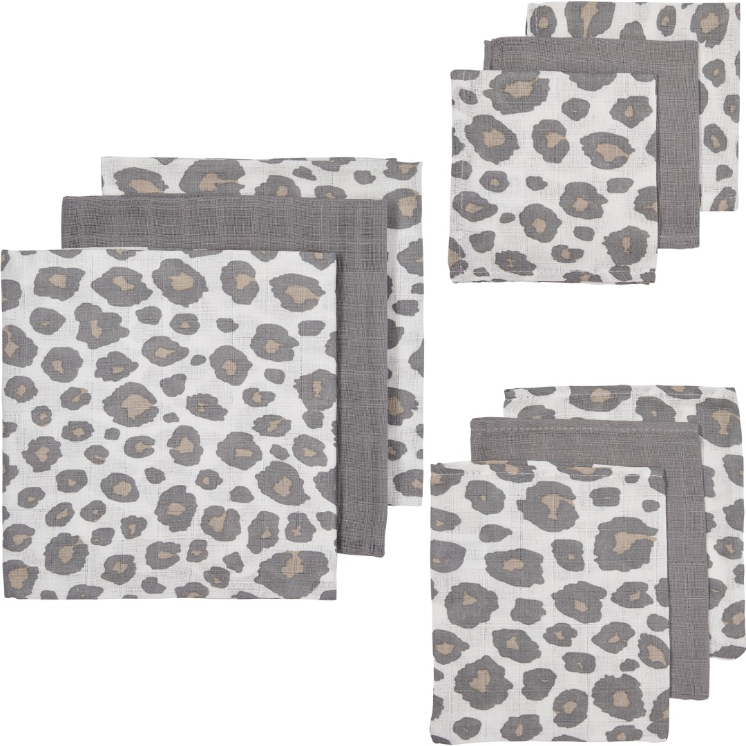Dat is nog eens handig: een complete Hydrofiele Starterset Panter 9-delig zodat je in één klap alle hydrofiele items in huis hebt. De set bestaat uit hydrofiele luiers, monddoekjes en washandjes met daarop de populaire panterprint in neutral kleur. Alle items zijn multifunctioneel te gebruiken.